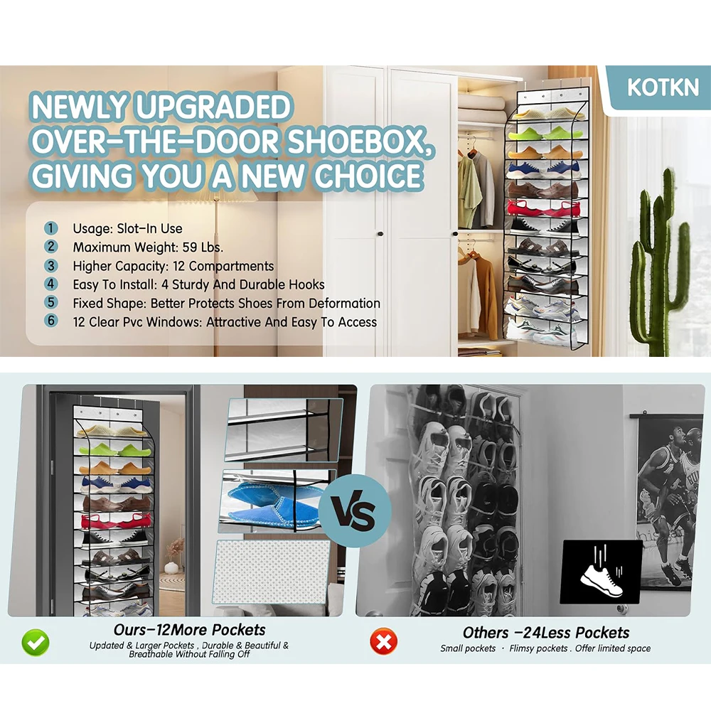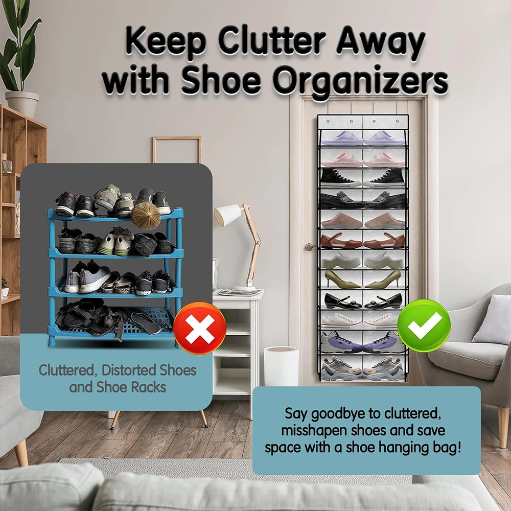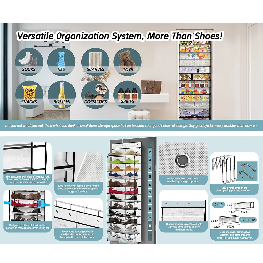 Over the Door Shoe Organizer for Closet Pack Hanging Rack Oxford Fabric Storage Holder Behind the Door