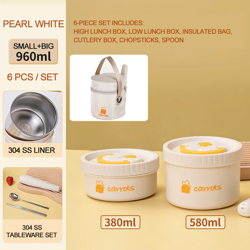 Custom 960ml 6 pieces bento lunch box 304 stainless steel insulated lunch box set with insulated bag