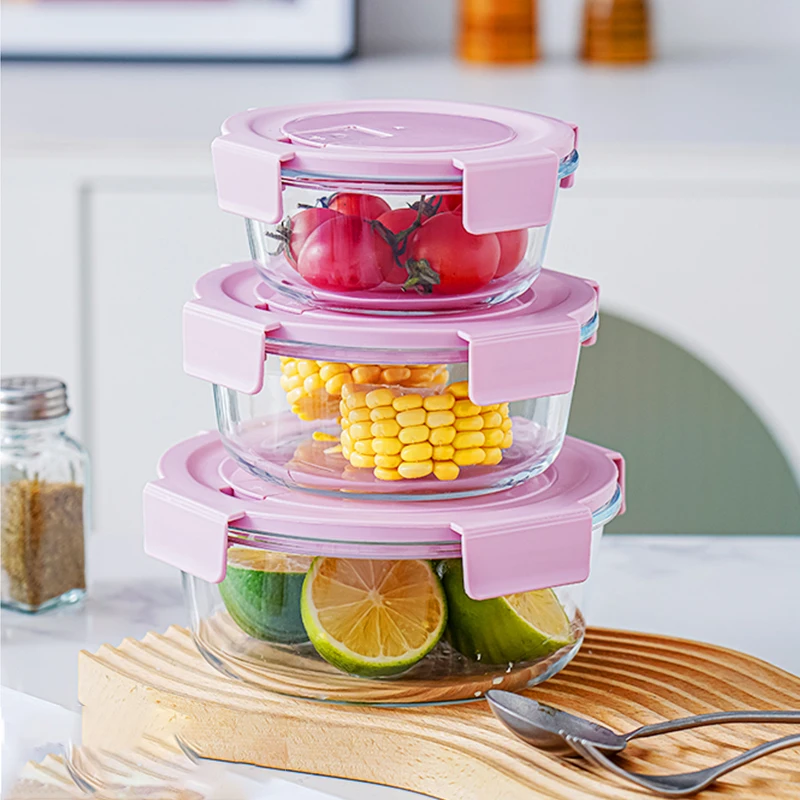 Multiple Sizes Glass Storage Containers with Lids Microwaveable Glass Food Container for Kitchen