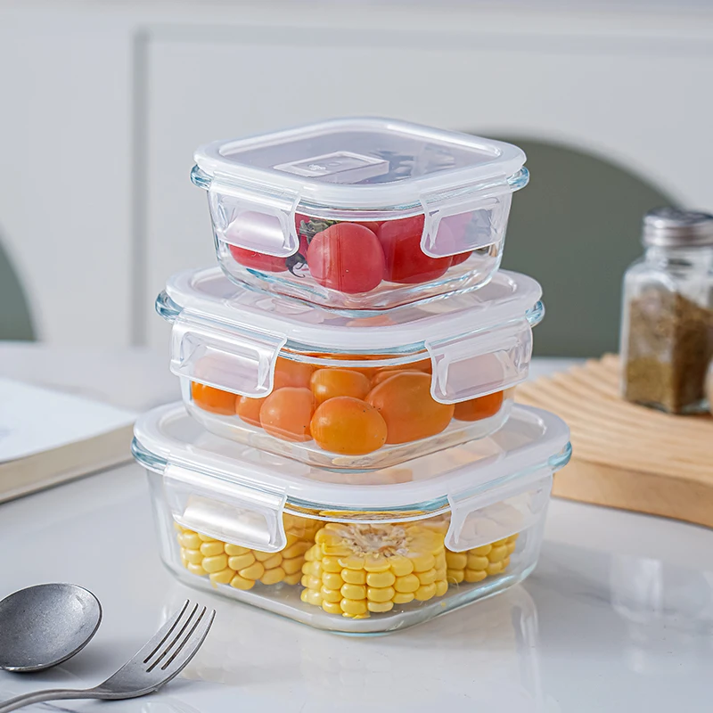 High Borosilicate Glass Bento Lunch Boxes Airtight Meal Prep Storage Food Container Set With Lids