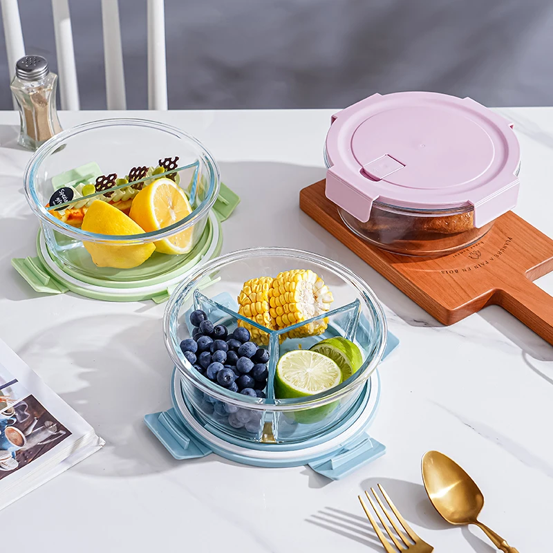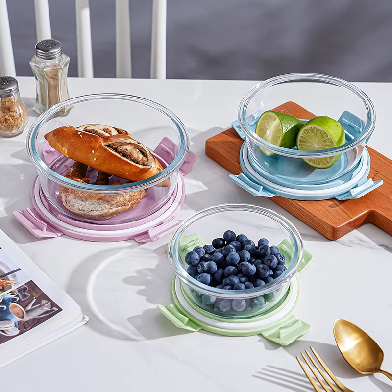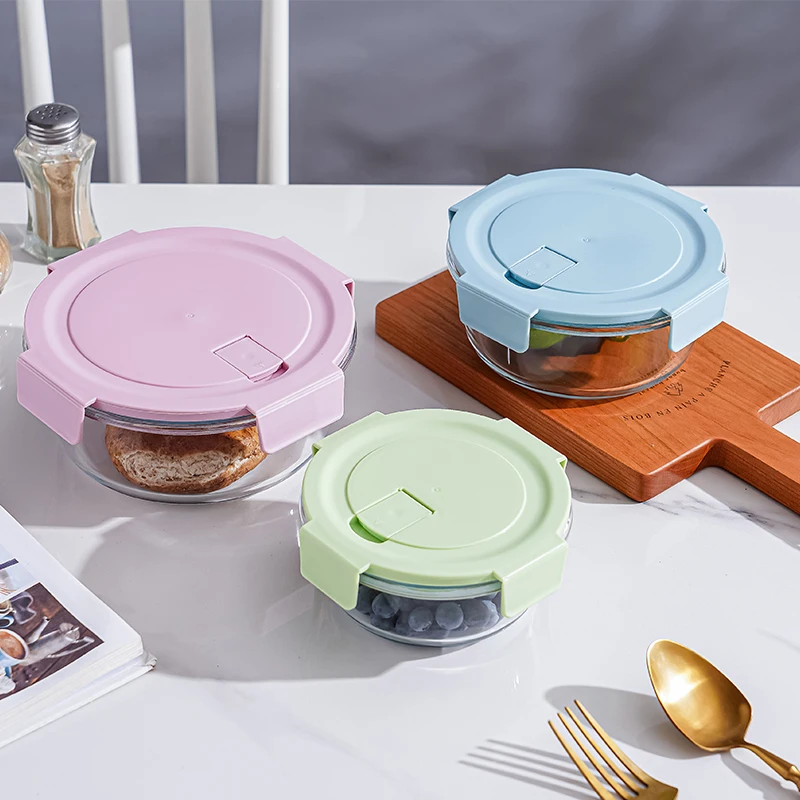 Manufacturer Wholase Round Glass Food Storage Containers with Lids Glass Meal Prep Food Containers for Storage