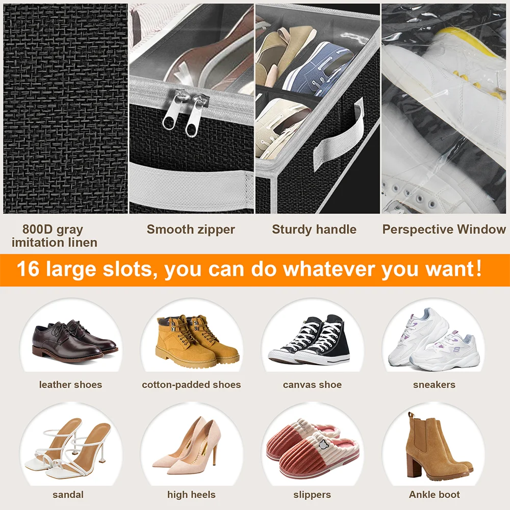 Under Bed Shoe Storage Organizer Set of 2 Heavy Duty Material Up to 32 Pairs Extra Strong Zipper College