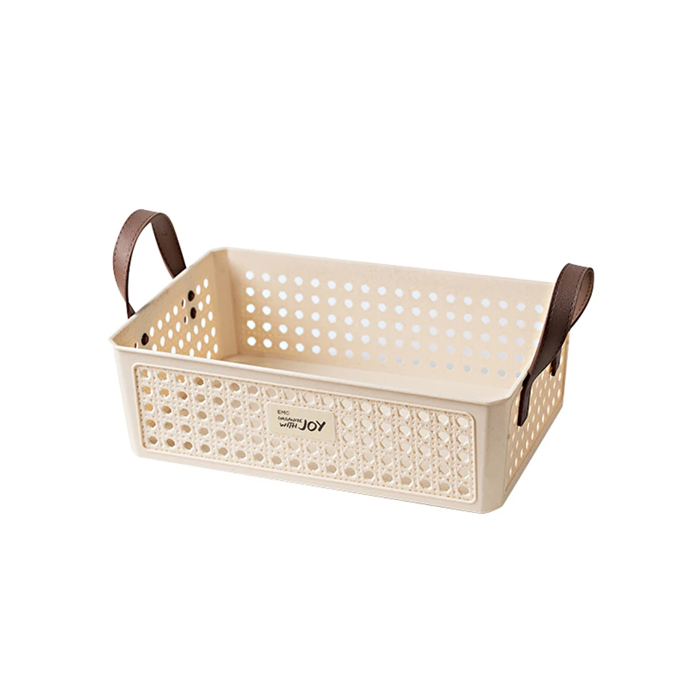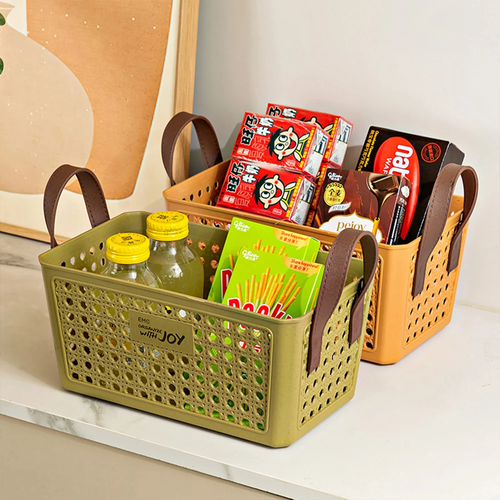 Portable square storage basket plastic organizer storage box with handle