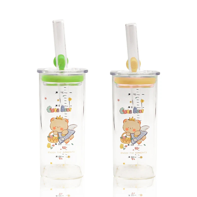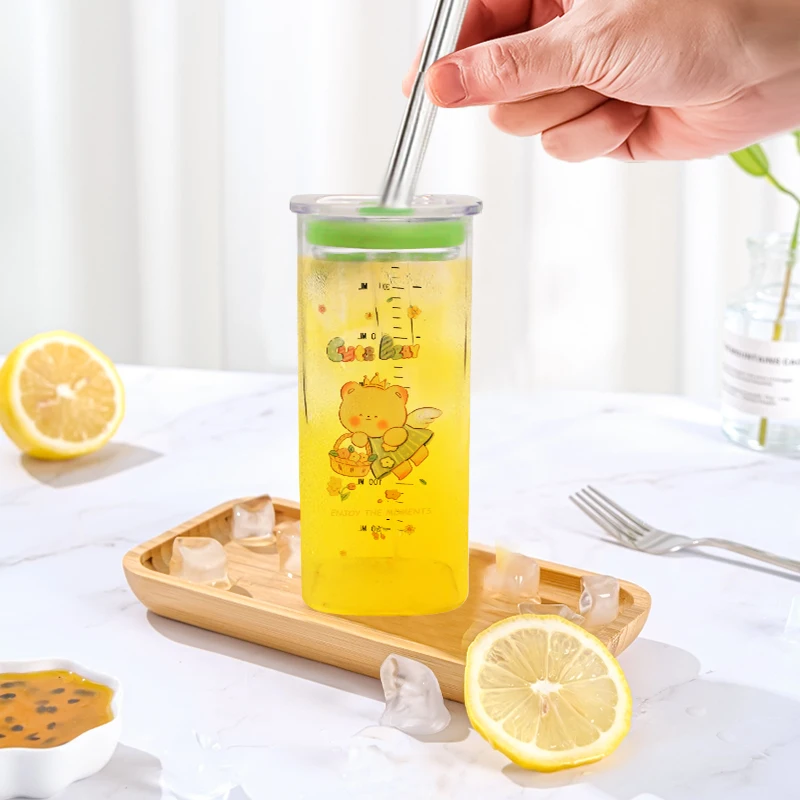 Customized Logo 350ml 11oz Drink Beer Juice Milk Can Glass Tumbler Square Transparent Water Glass Cups With Straw And Lid