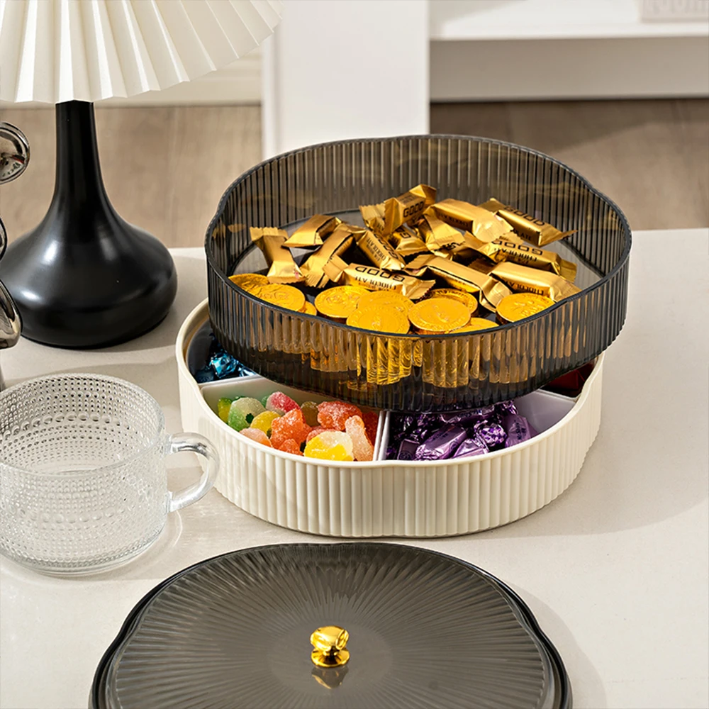 Hot sell double layer rotating grid dry fruit plate dried fruit packaging box storage box
