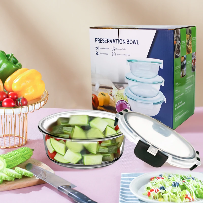Kitchen Microwave Heat-Resistant High Borosilicate Glass Food Storage Container With Lid Sealed Meal Prep Glass Lunch Boxes