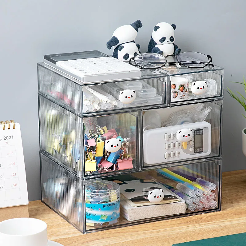 Waterproof transparent PET desktop cosmetic stationery storage box organizer