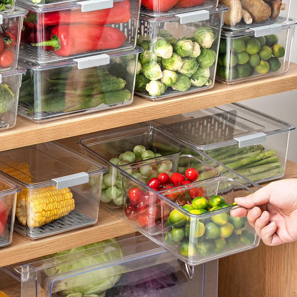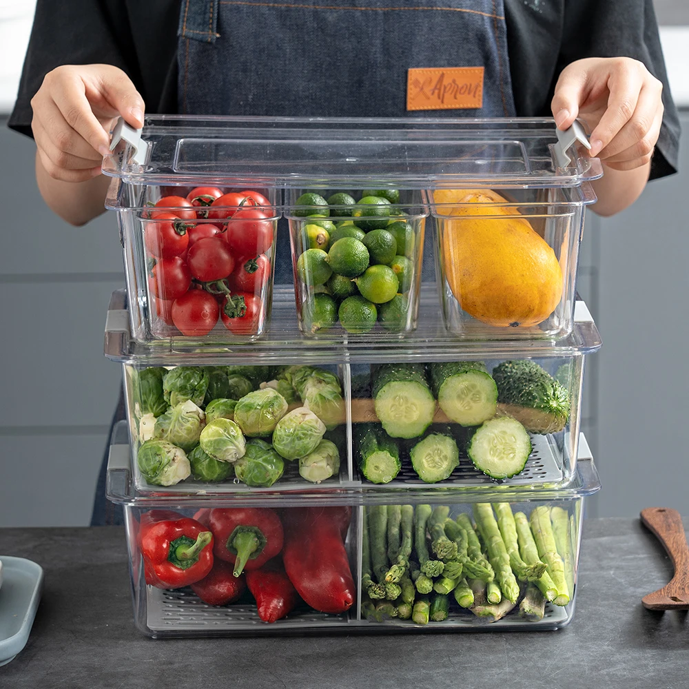 Best price airtight clear plastic vegetable refrigerator storage