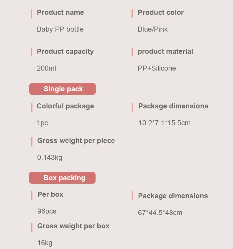 Item name: | Wholesale Stock Cheap Handled Plastic 200ML BPA Free Eco Friendly Food Grade PP Wide Mouth Baby Feeding Bottles For Babies |