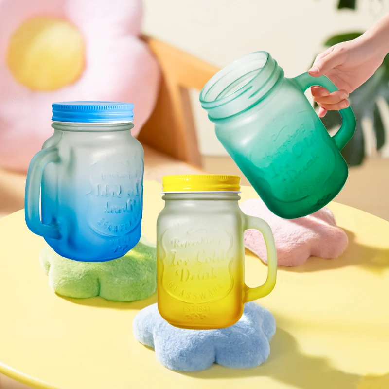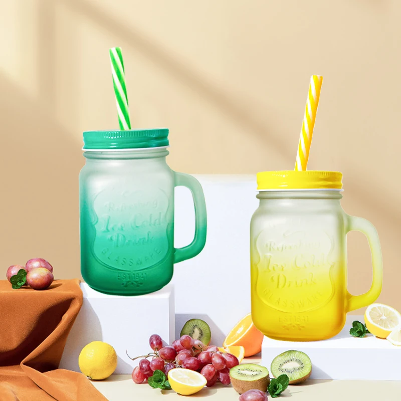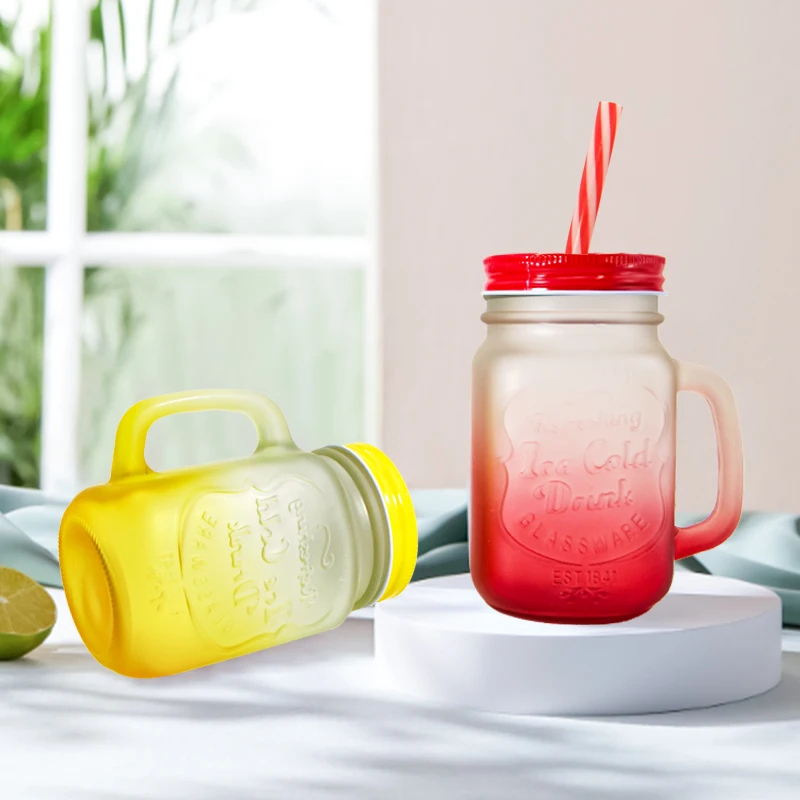 Custom Christmas Frosted 12oz 16oz Ice Beer Soda Drinking Mason Can Shaped Glass Coffee Mug Cup With Handle And Straw For Gift