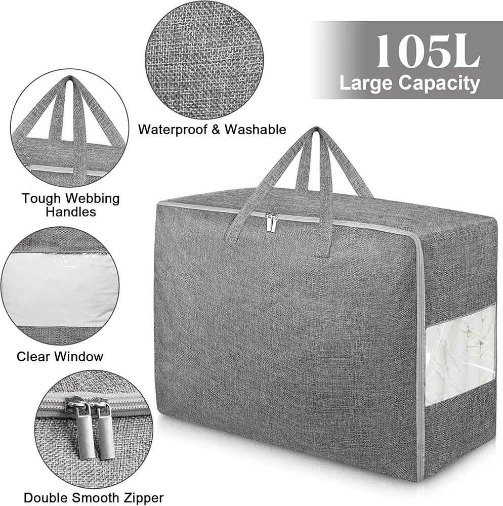 Hot Sale 85L Extra Large Folding Moving Comforter Blanket Storage Bags Closet Organizers for Clothes