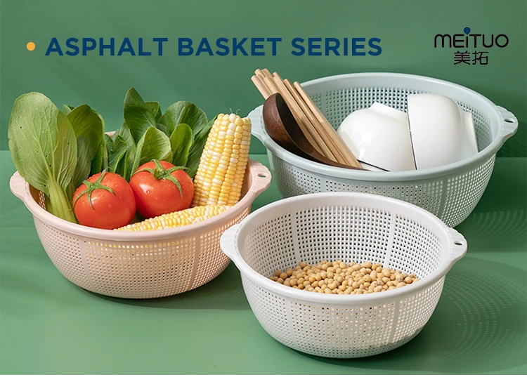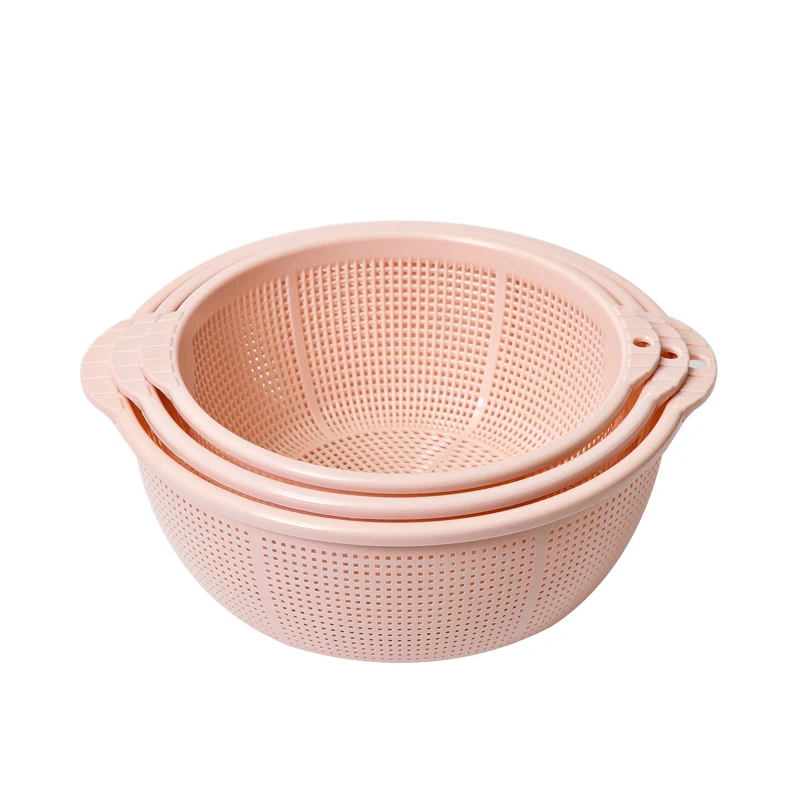 Best price plastic kitchen fruits drain basket vegetable asphalt basket three piece set