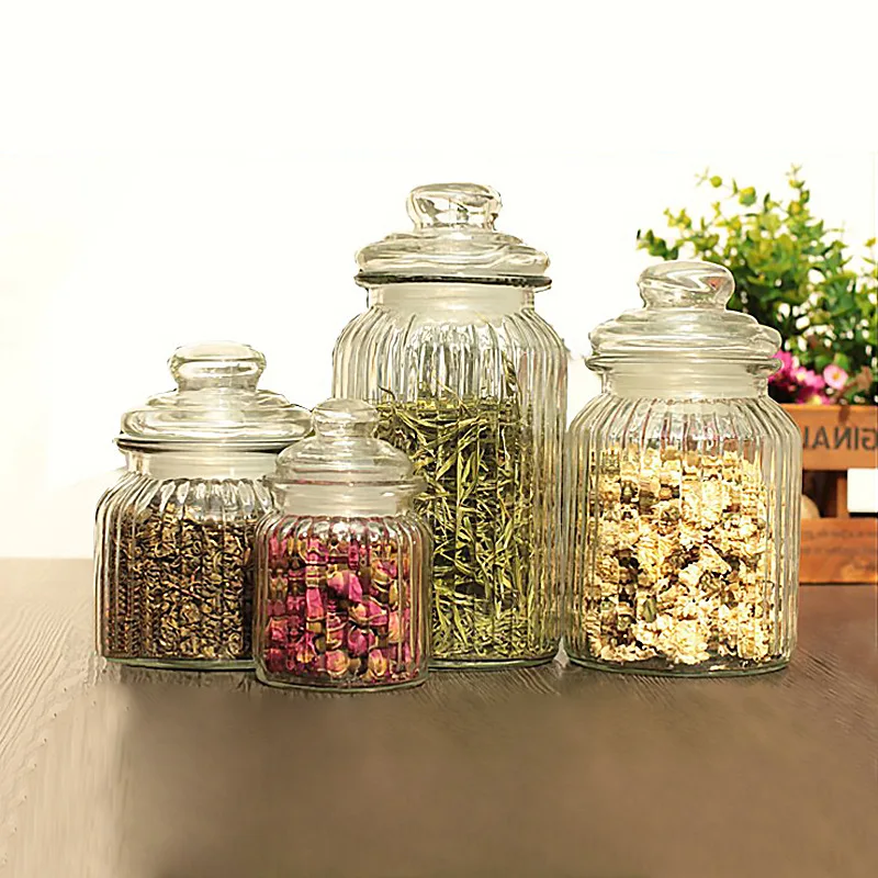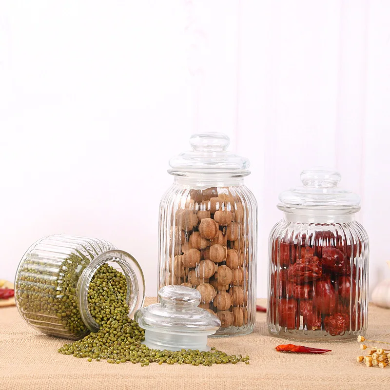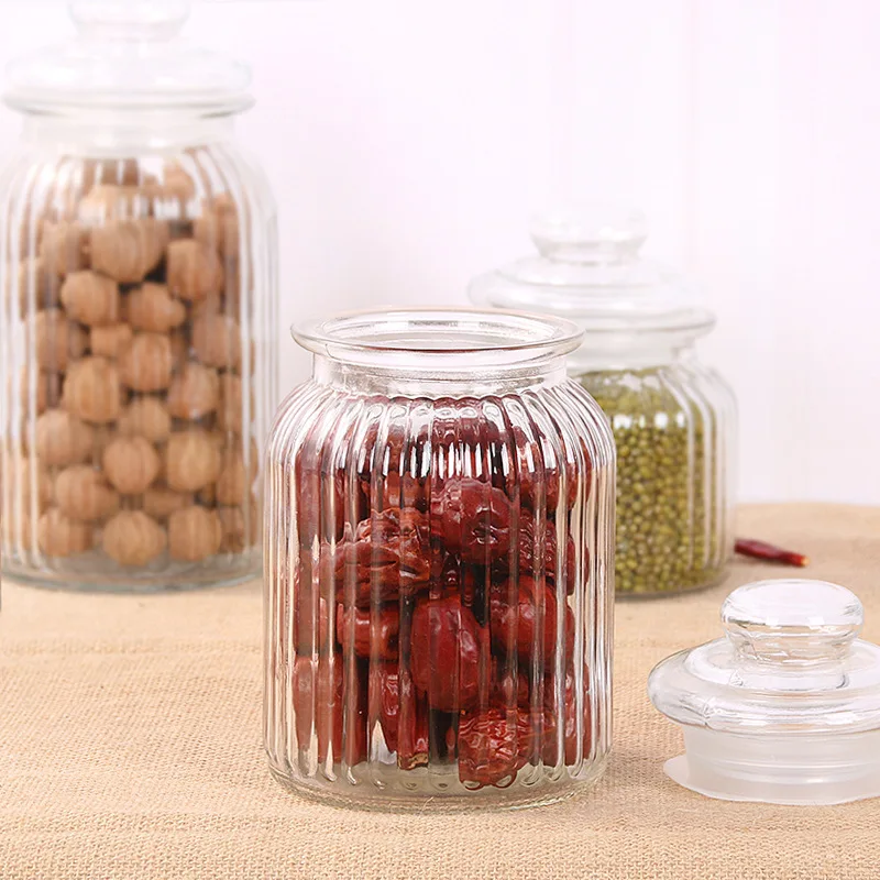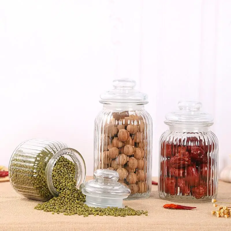 New Trend Kitchen Clear 230ml 650ml 950ml 1250ml Glass Empty Food Storage Container Glass Candy Jar With Lids
