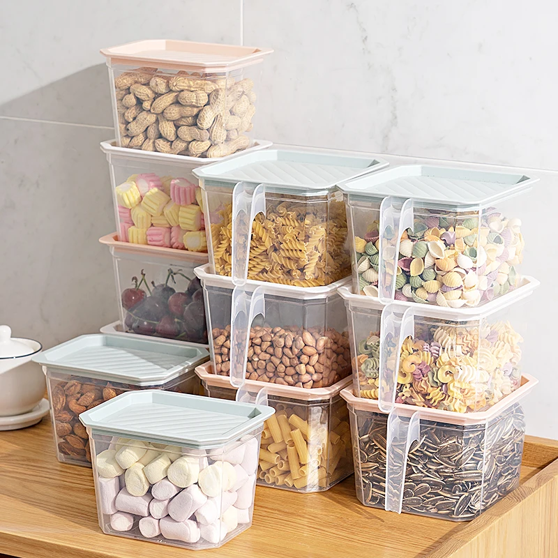 Transparent crisper fridge food plastic storage bins boxes with lid