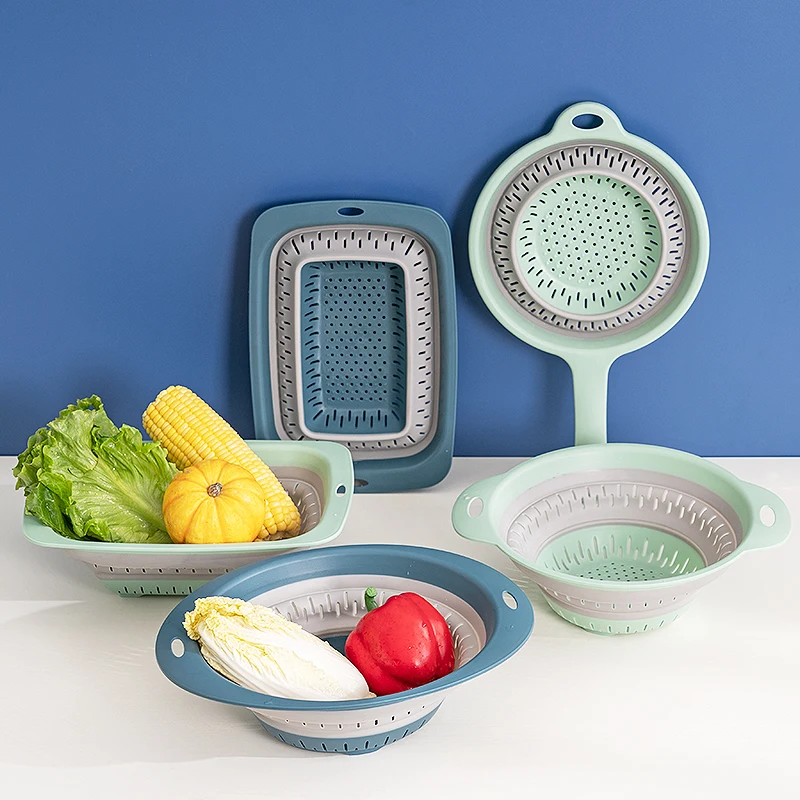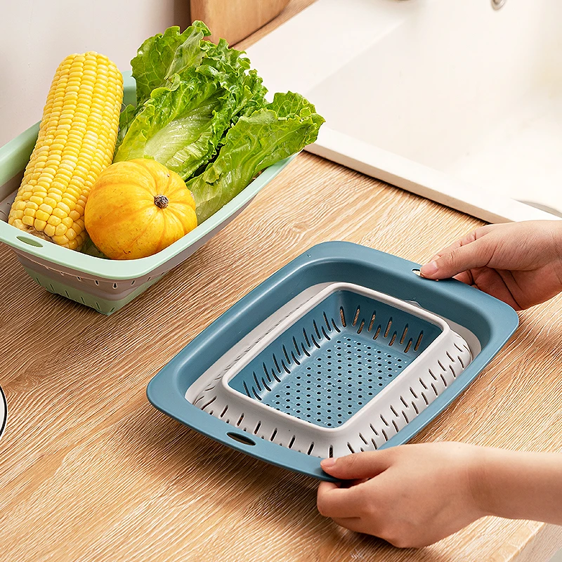 Kitchen folding drain basket vegetable fruits washing bowls