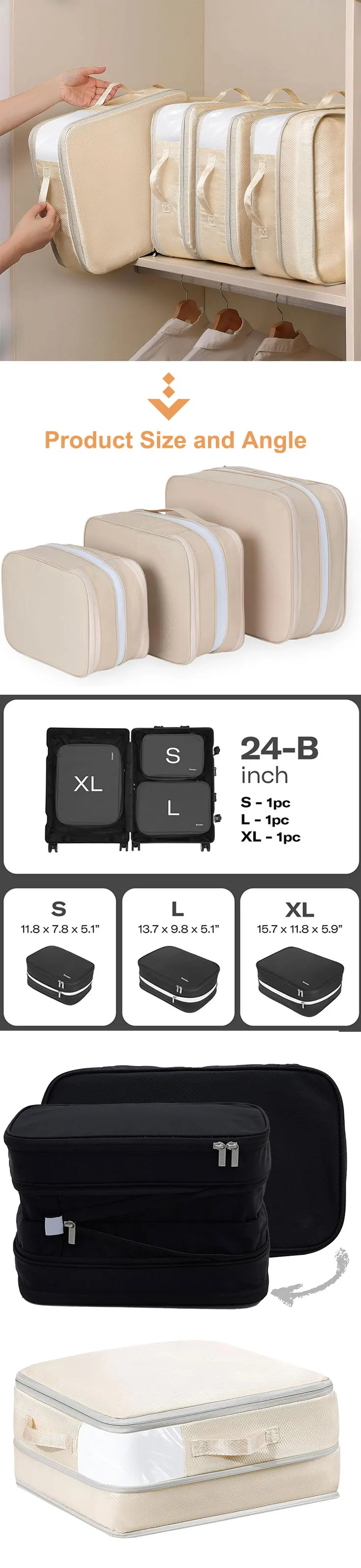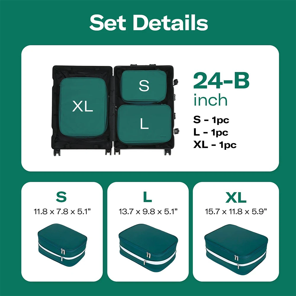 Hot Sale Double Capacity Design ripstop nylon compression packing cubes with double-zipper