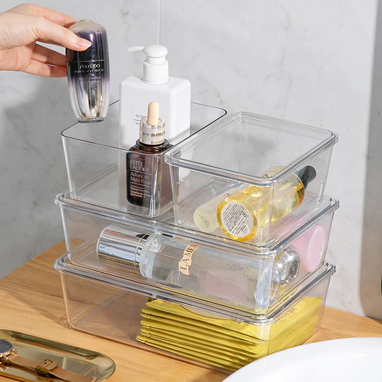 Clear plastic drawer organizers set storage box bins for kitchen