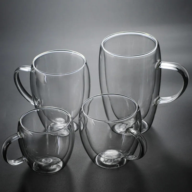 Custom Logo Insulated Clear Double Wall Glass Coffee Cups Mugs 250ml 350ml 450ml Heat-resistant Double Layer Glass Cup