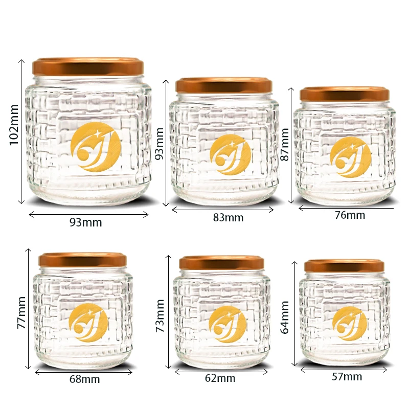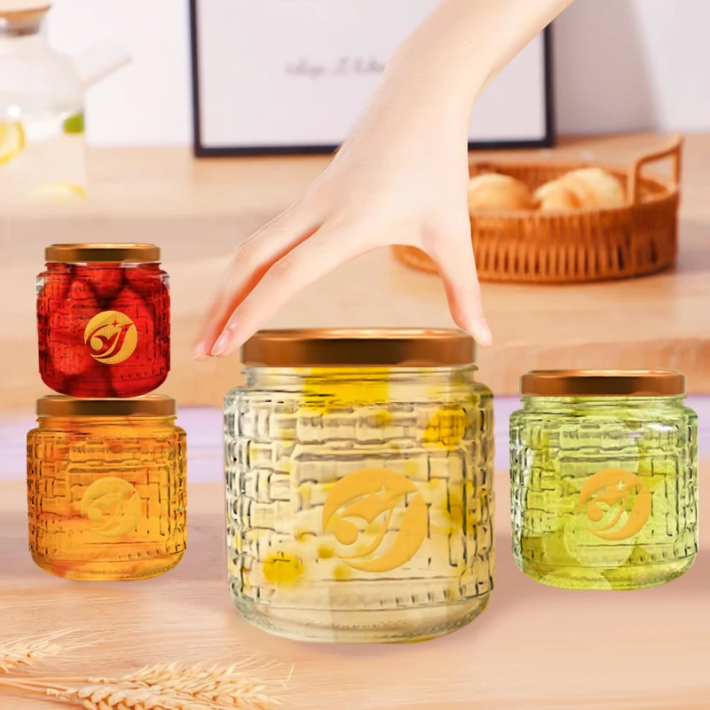 100ml 200ml 350ml 450ml Luxury Round Transparent Mini Jelly Jam Honey Jars Glass Container Food Storage Set For Gift