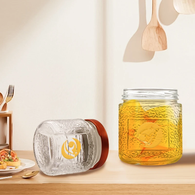 Custom Logo Kitchen Empty Cylinder Glass Jars With Lids For Food Honey Jam Sauce Pickle Spice Glass Food Storage Container