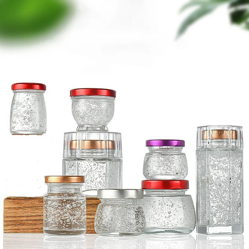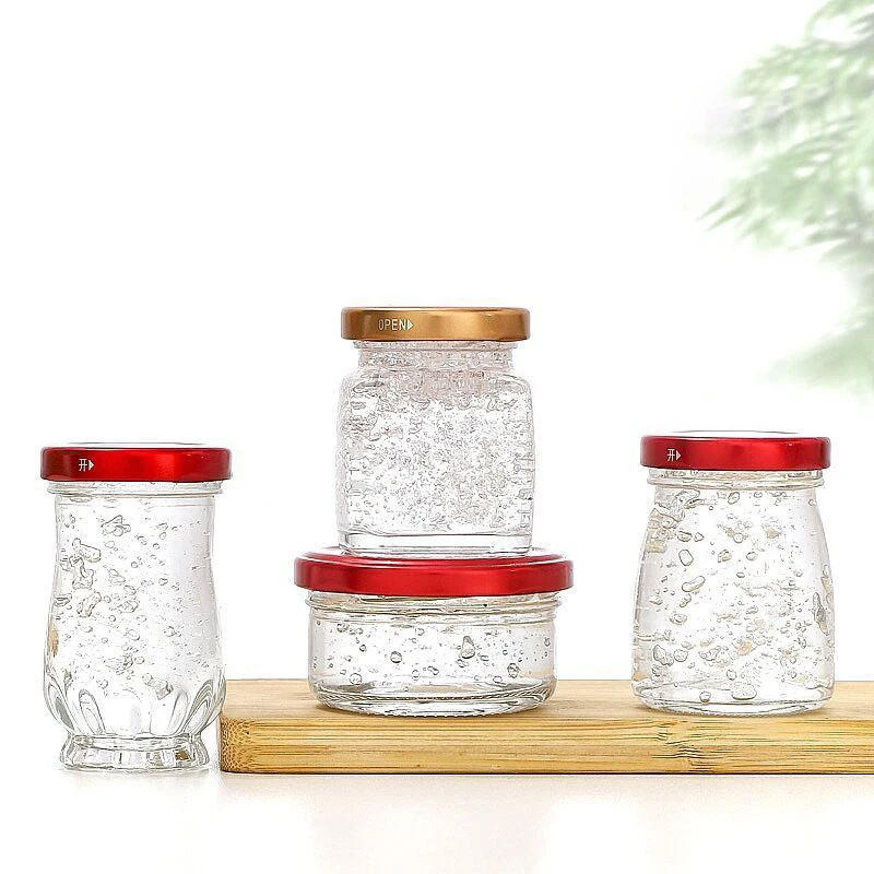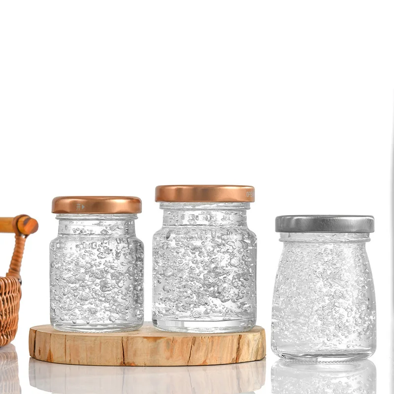 Empty 50ml 75ml 100ml Refillable Round Glass Bird'S Nest Bottle Small Food Jam Jelly Glass Honey Jar With Mental Lid For Wedding