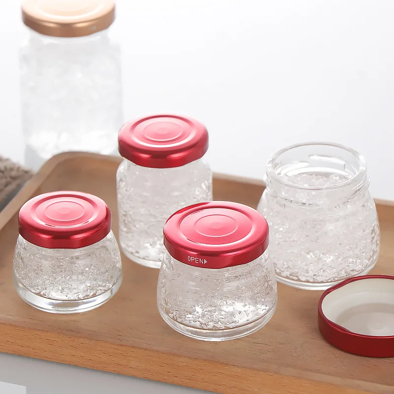 Custom Logo 50ml 75ml 100ml Thick Glass Bird'S Nest Bottle Mini Glass Jam Food Jelly Honey Jar Container Bottle With Metal Lids