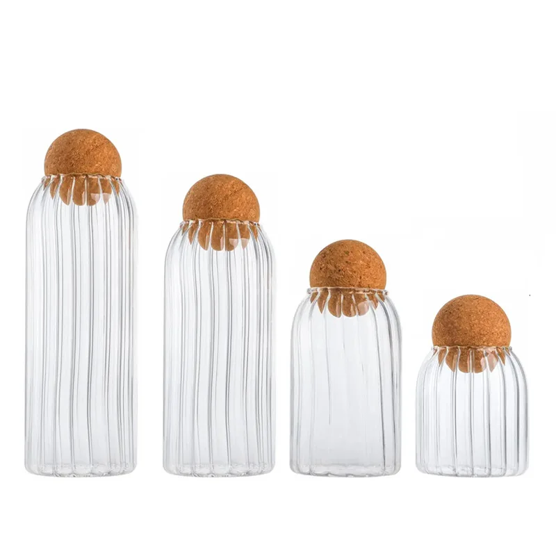 Wholesale 500ml 800ml High Borosilicate Glass Food Storage Container Set Spice Candy Food Stoeage Glass Jars With Cork Top