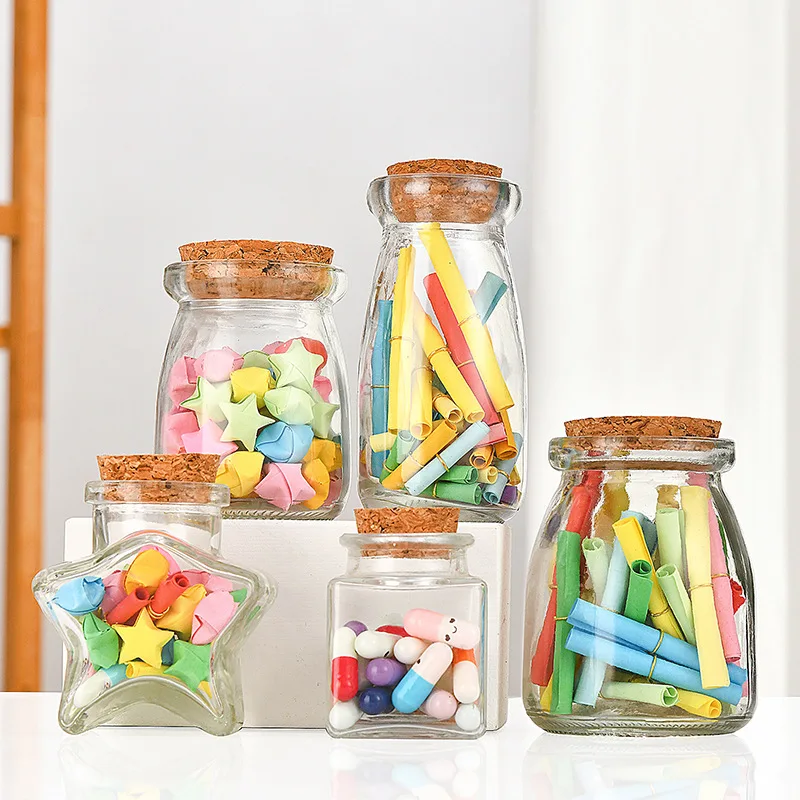 50ml 100ml 200ml Mult Shapes Glass Pudding Jars Yogurt Glass Jars With Cork Lids Candy Glass Containers Wedding Favors Honey Pot