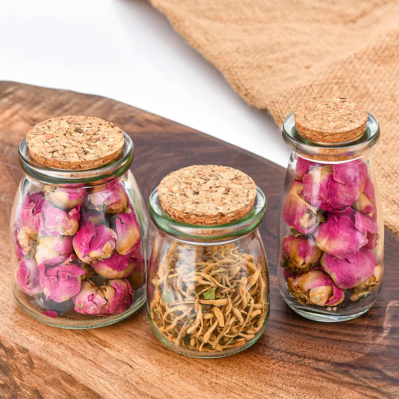 In stock 100ml 50ml 200ml Jam Sauce Food Glass Bottle Clear Round Pudding Jar Honey Yogurt Glass Jar With Cork Lid