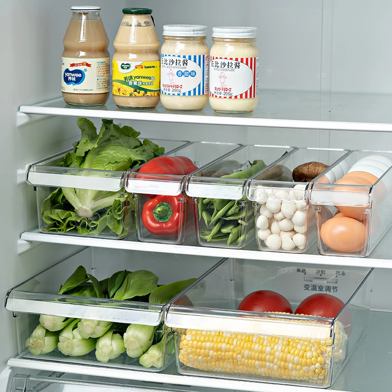 Refrigerator storage box fridge organizer kitchen plastic storage basket with handle