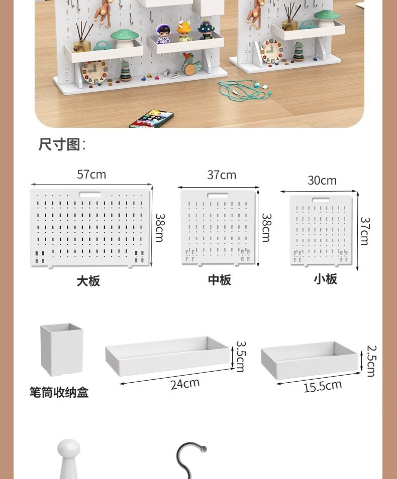 wire-wrap board with drawing (partition x3 + hook x3 + pen holder x1)