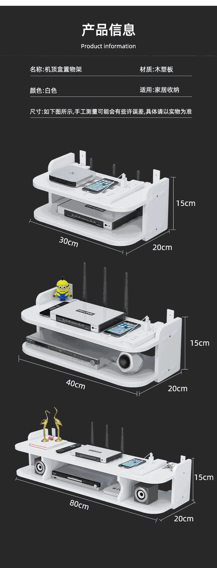 three-layer 30cm long set-top box (free installation accessories)