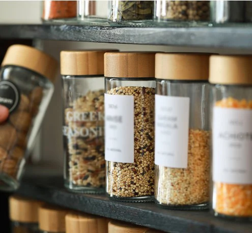 OEM Kitchen 100ml Spices Glass Bottles Empty Glass Jar For Seasoning Round Glass Spice Jar With Wooden Bamboo Lid Set