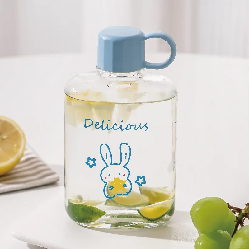 Wholesale Eco friendly 10oz Christmas Clear Flat Square Glass Water Bottle Portable Pocket Glass Drink Bottle For Water With Lid