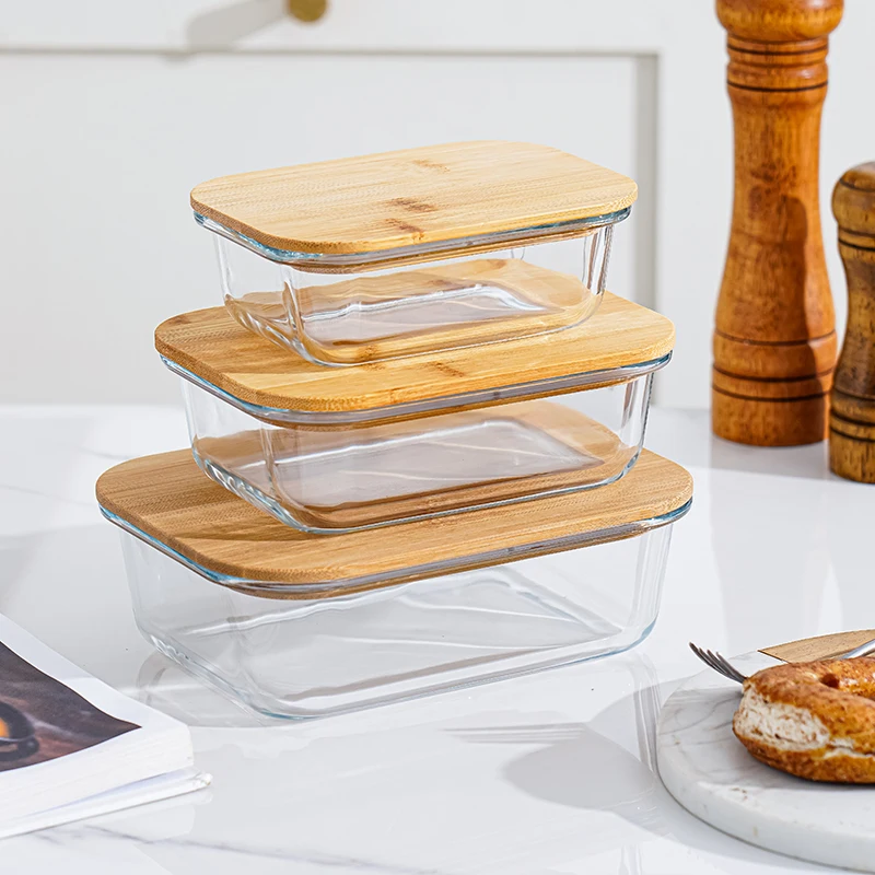 Eco-friendly Glass Lunch Storage Containers Kitchen High Borosilicate Microwave Meal Prep Glass Container With Bamboo Lid