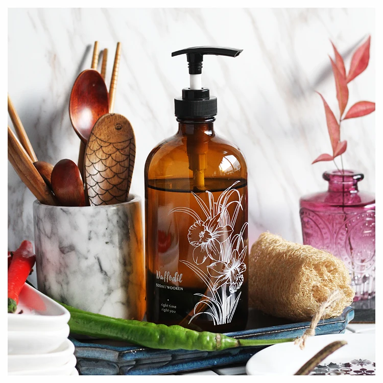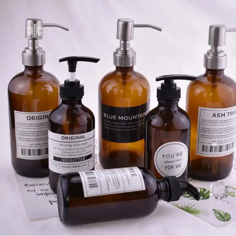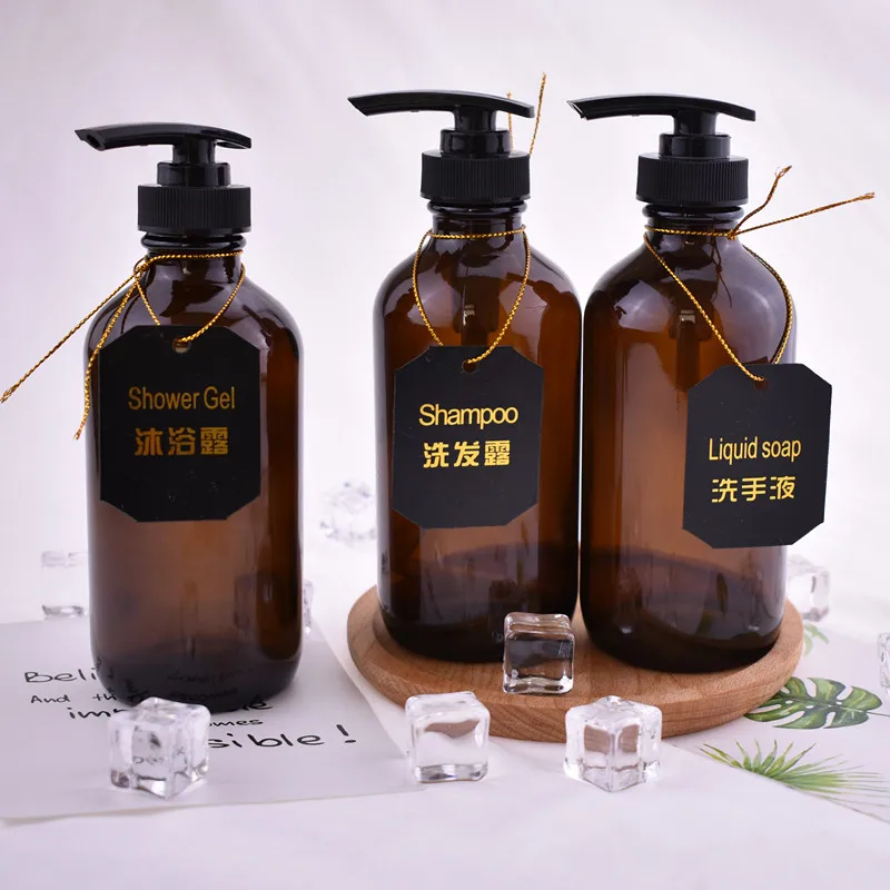 250ml 500ml Boston Round Hand Shampoo Bath Lotion Dispenser Glass Pump Bottle with Pump