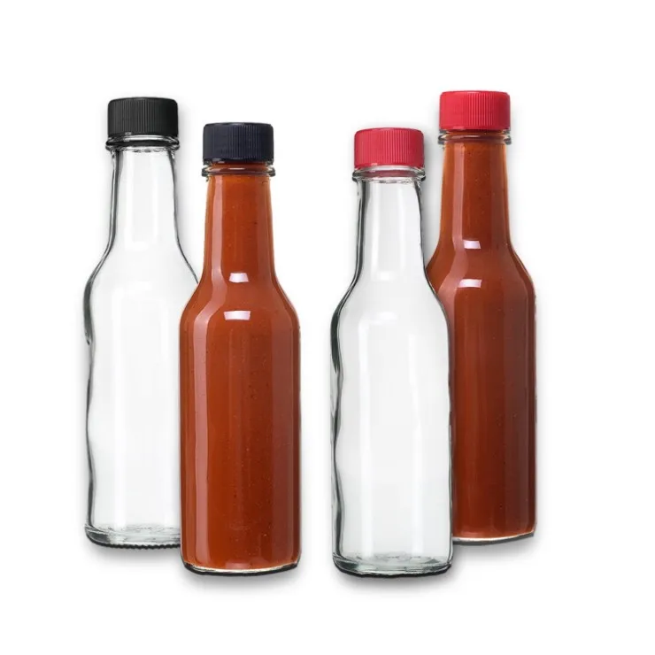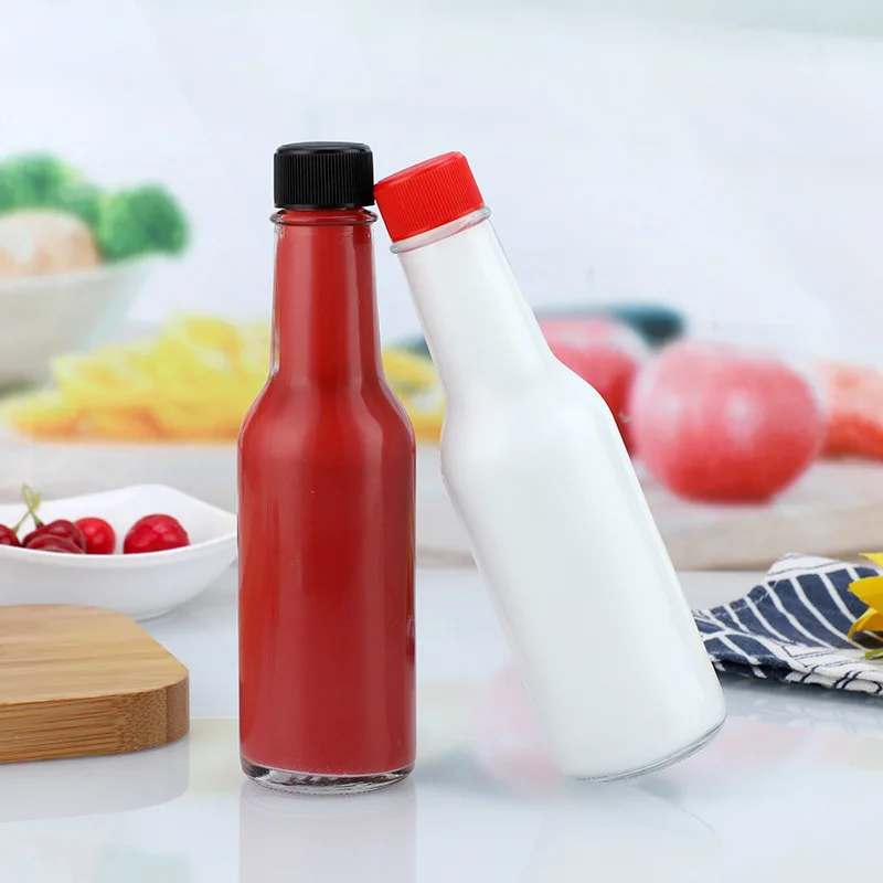 Factory wholesale Clear 90ml 150 ml 250ml woozy bottle vinegar ketchup Chili hot sauce Glass bottle with plastic Caps