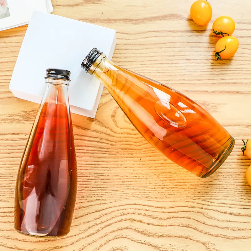 Hot Sell Glass Jars 16 oz Beverage Enzyme Bottle Round Package Empty Glass Bottles Juice with Aluminum Screw Lid