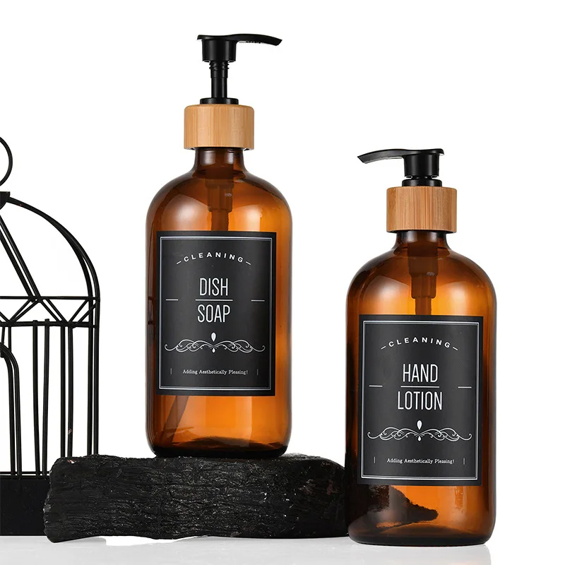 Custom Label Luxury 250ml 500ml Amber Black Boston Round Glass Soap Pump Bottle Shampoo Body Lotion Dispenser Bottles