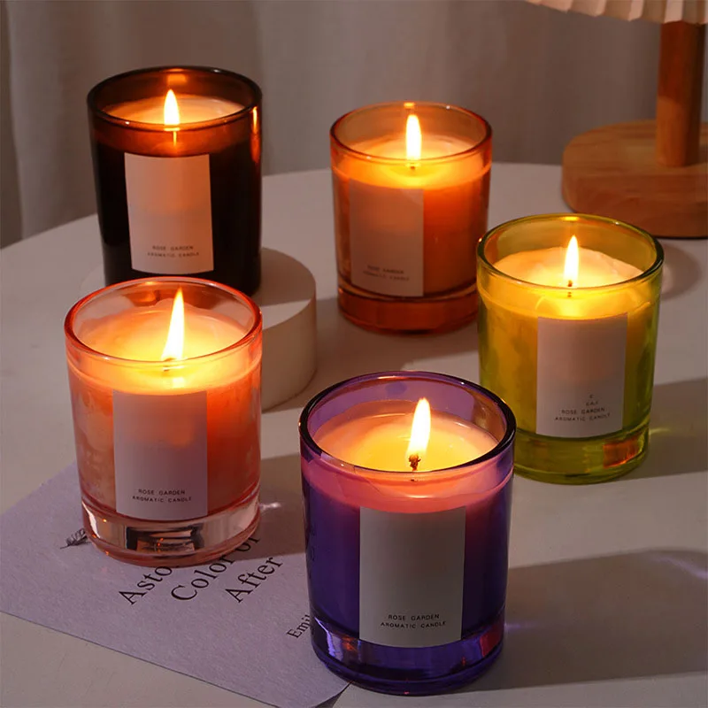 Wholesale Nordic Homedecor Luxury Scented Candle Diy Candle Container Empty Colored Candle Jars With Lid And Boxes Packaging