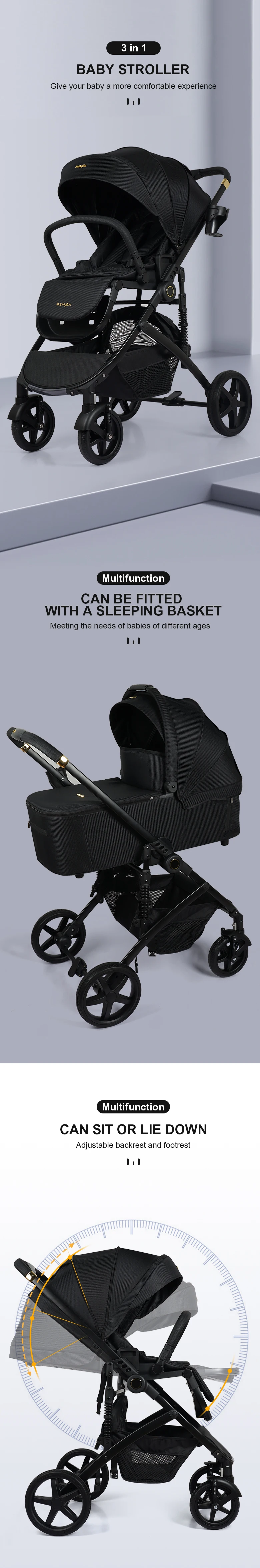 Wholesale Baby Stroller Carriage 4 In 1 Luxury Stroller For Baby High Landscape Foldable Baby Pram 3 In 1 With Car Seat