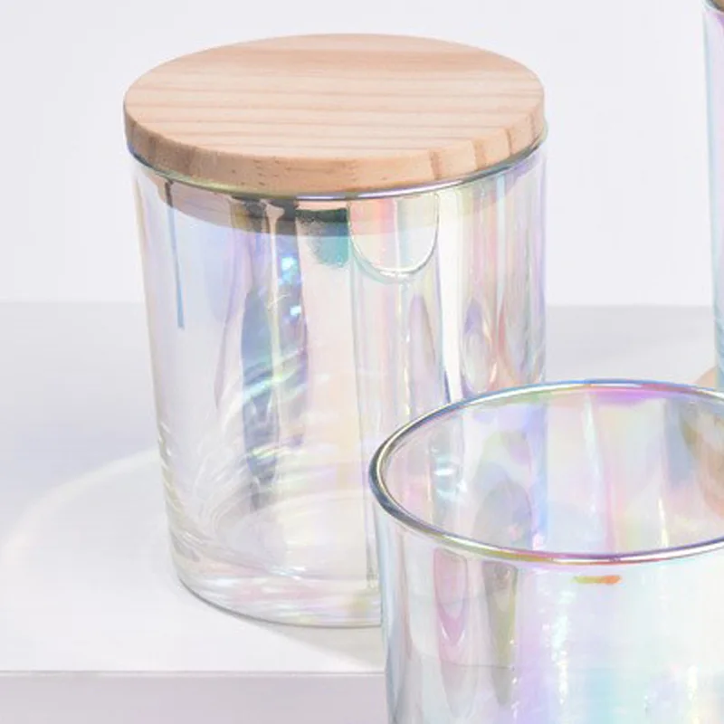 Luxury Fashion Iridescent Colorful Plating Glass Candle Jar Empty Glass Candle Jar Round Luxury Glass Holographic Candle Jar