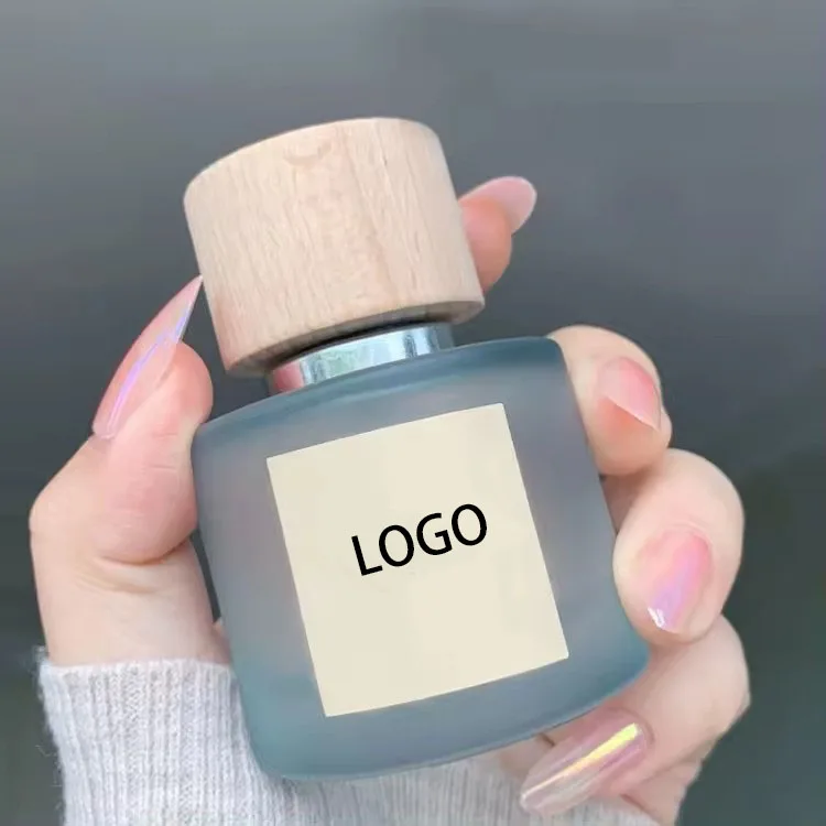 Factory Wholesale High Quality Round Perfume Bottle 50ml 30ml 100ml Wooden Cap Glass Pink Perfume Bottle With Box