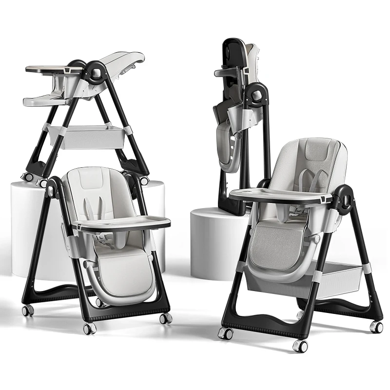 Silla Comedor Para Bebe Kids' Baby Feeding Dining Chair Eat Booster Seat Foldable Baby High Chair 3 In 1 With 4 Wheels