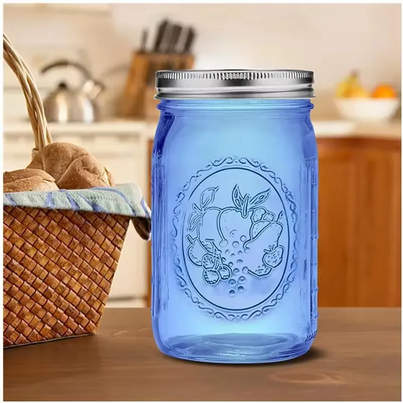 wholesale 16oz 20oz Blue Carved Tumbler Cups Modern Clear Mini Tumbler Shot Glass Bottles With Screw Cap