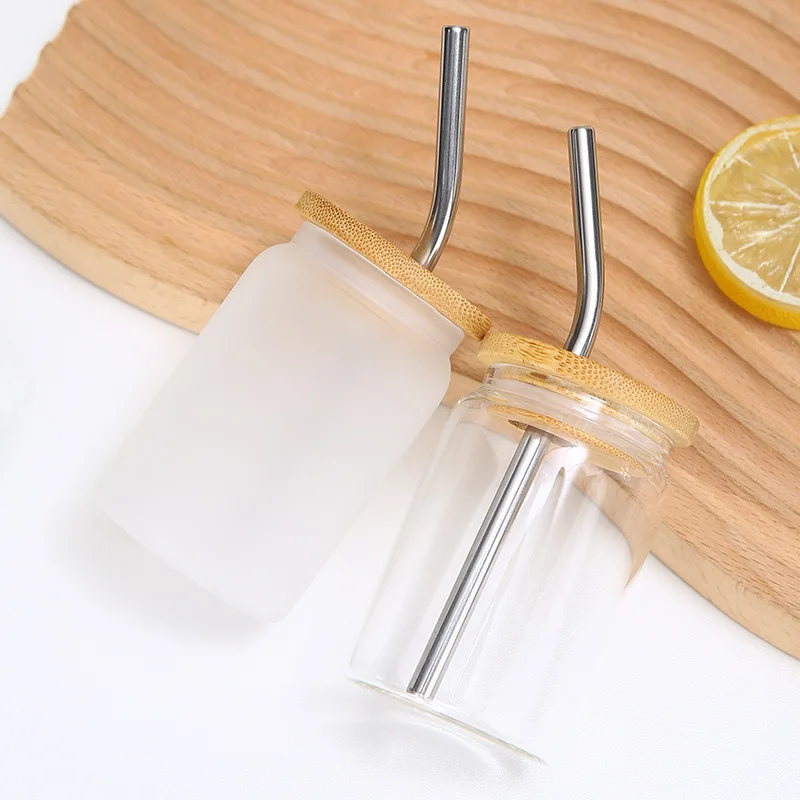 New Recommend 3.5oz Mini Sublimation UV DTF glass beer can Cute shot glass with bamboo lid and metal straw