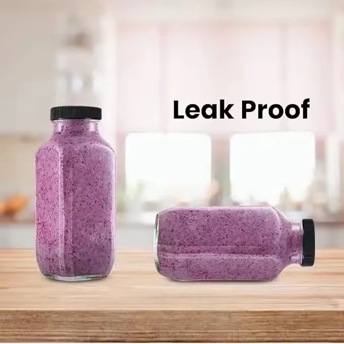 Wholesale 250ml 8oz Soda Clear Milk Soda Juice Glass Jar With Screw Lid Square Juice Glass Bottles With Cap