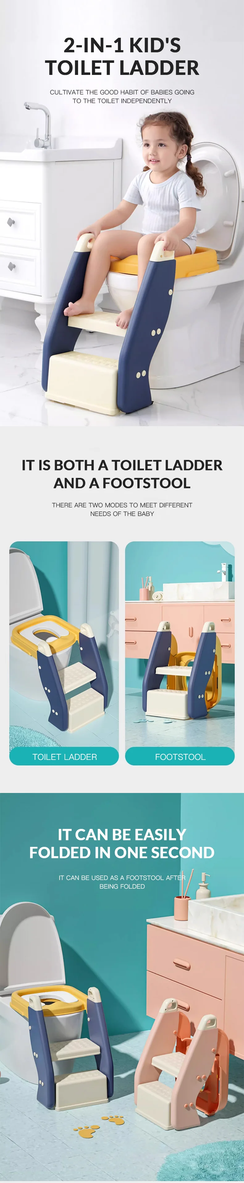 Item name: | Customization Design Baby Products Baby Step Stool Easy Clean Baby Collapsible Ladder Potty Plastic Kids Toilet Ladder |