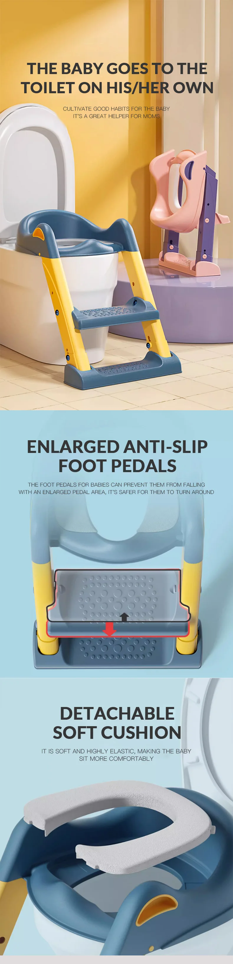 Item name: | Customization Design Baby Products Baby Step Stool Easy Clean Baby Collapsible Ladder Potty Plastic Kids Toilet Ladder |