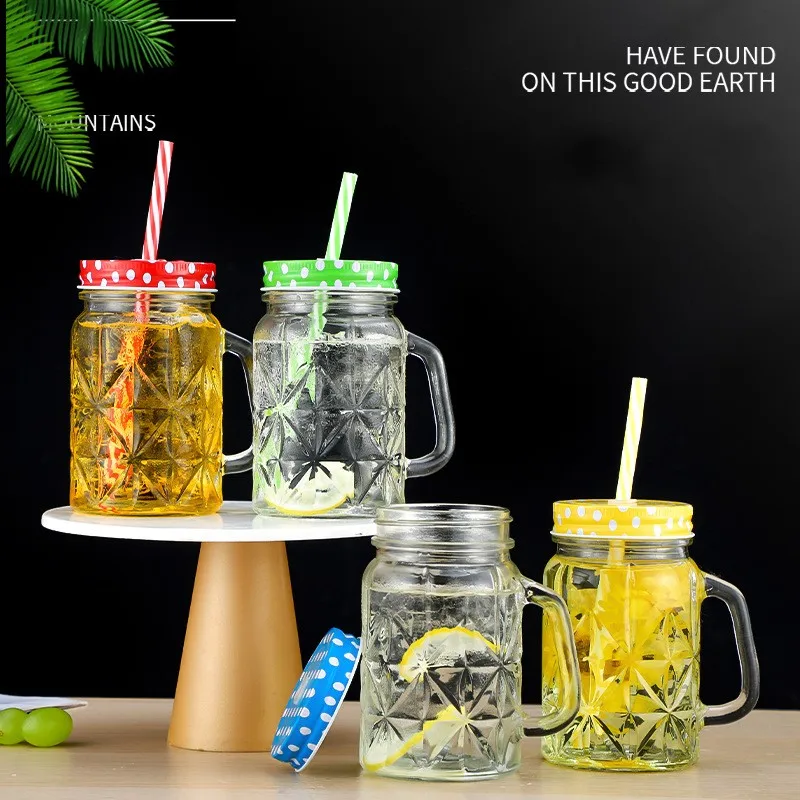 500ml Red Blue Yellow Green Empty Glass Bottles For Beverages Drinking Glass Mason Jars With Metal Screw Lids